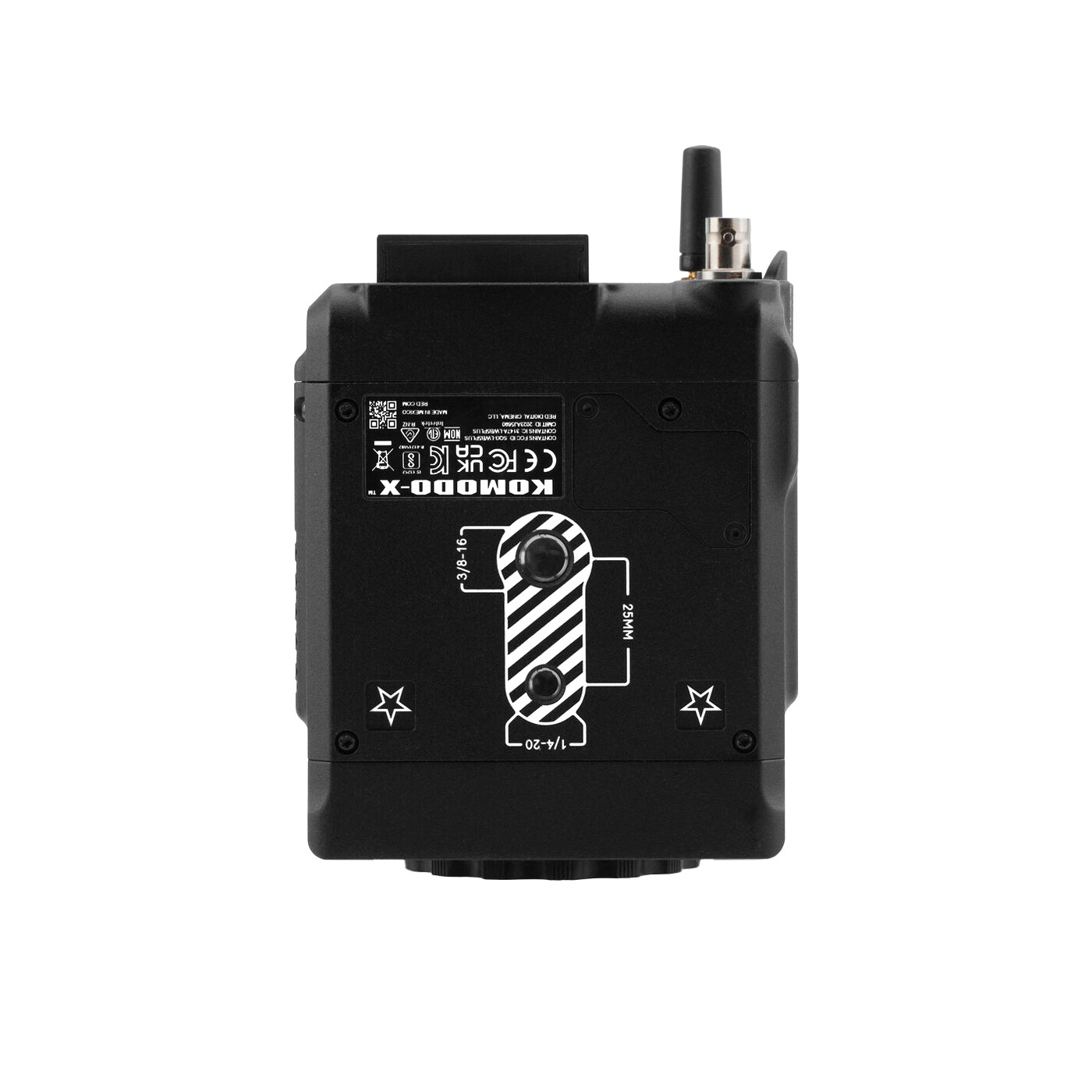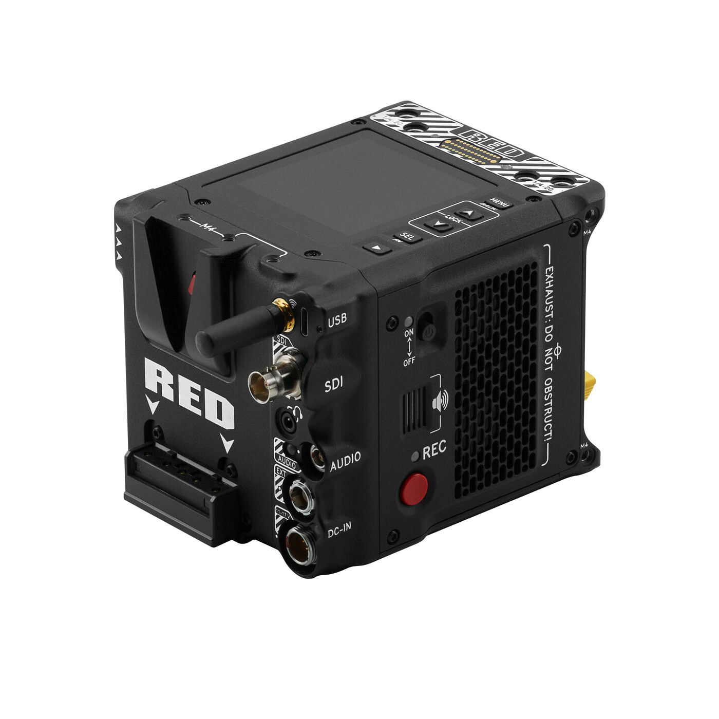 With key improvements for professional workflows, the KOMODO-X now shares many features with the DSMC3 line while still maintaining the impressively small KOMODO form factor. An integrated micro V-Lock allows for direct attachment of professional micro V-Lock batteries without the need for adapters and is also compatible with the RED Pro I/O Module to provide auxiliary power and compatibility with full sized V-Lock and Gold Mount batteries.