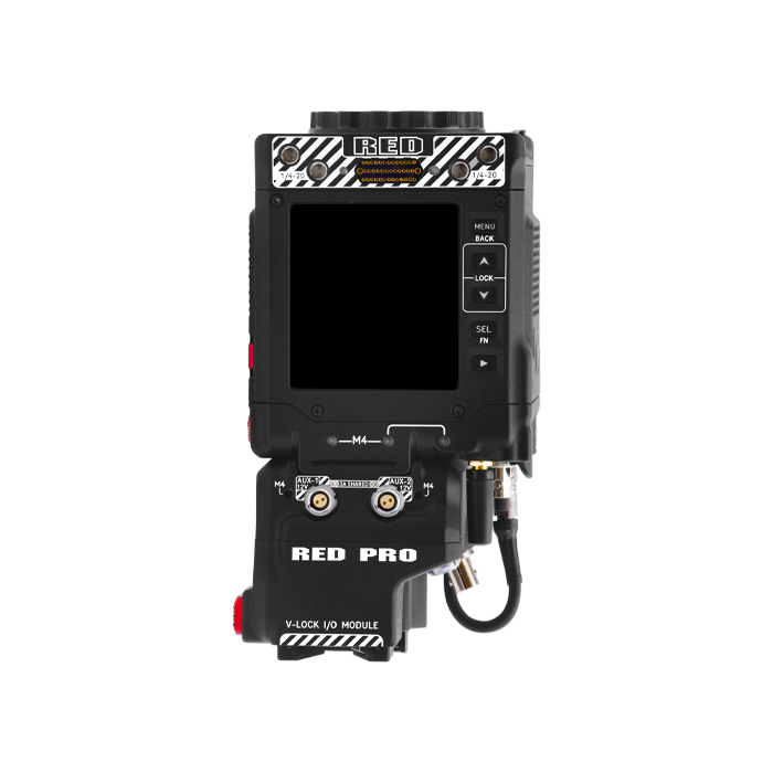 The RED Pro I/O V-Lock Module offers a variety of input / output connections, as well as an industry standard V-lock mount to power your Komodo-X with higher capacity batteries.