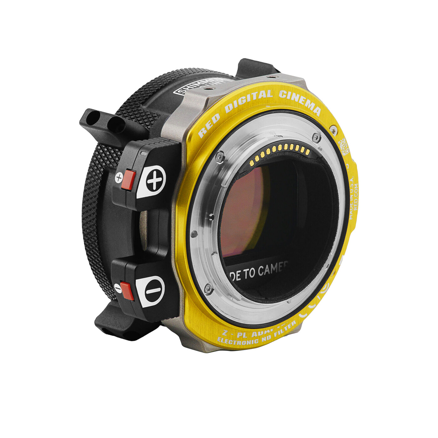 The RED V-RAPTOR Z to PL w/ Electronic ND Filter Adapter Pack integrates the same precise electronic ND control as used in the V-RAPTOR XL into a robust PL mount solution for the RED V-RAPTOR.