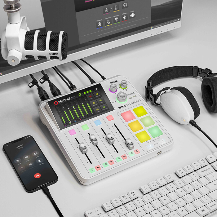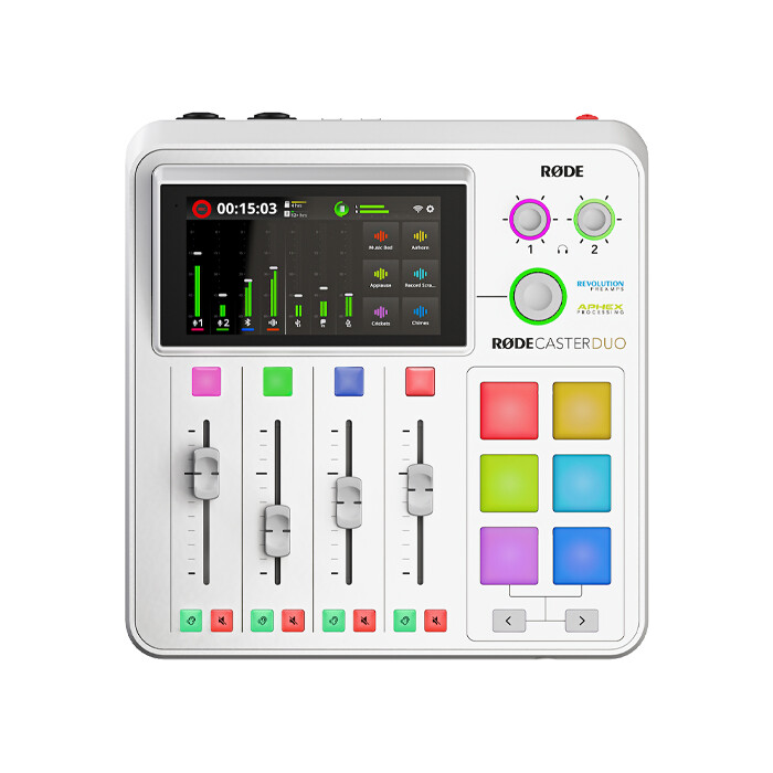 RØDE skabte kategorien alt-i-én podcastingkonsol med den originale RØDECaster Pro i 2018, og siden lanceringen i 2022 er RØDECaster Pro II blevet hyldet som den mest kraftfulde lydproduktionskonsol af sin art. RØDECaster Duo vil fortsætte denne arv og levere alt, hvad brugerne er kommet til at elske ved sin søskende i en mere kompakt version – perfekt til skabere, der kræver færre lydinput, men ikke ønsker at gå på kompromis med lydkvaliteten.