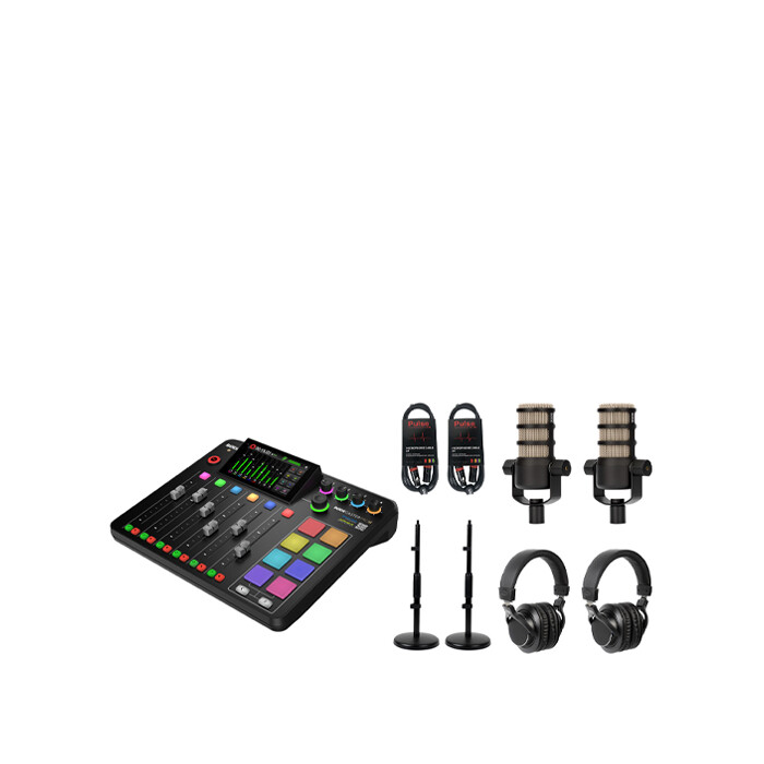 RØDE RØDECaster PRO II Podcasting bundle 2 er en perfekt pakke til dem, der stiller høje krav til deres podcast-udstyr og ønsker god lydkvalitet og komfort. Pakken indeholder 1 x RØDECaster PRO II, 2 x RØDE PodMic, 2 x Pulse HP3500-hovedtelefoner, 2 x RØDE DS1 Professional-mikrofonstativer og 2 x Pulse 2m XLR/XLR-kabler.