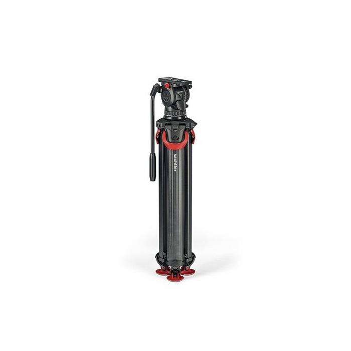 Det 2-trins kulfiberstativ har en høj torsionsstivhed og er udstyret med unikke quick-release bremser, som gør det muligt at justere og låse stativet på få sekunder. Den ergonomiske konstruktion sikrer en komfortabel transport, enten over skulderen eller via bærehåndtaget.