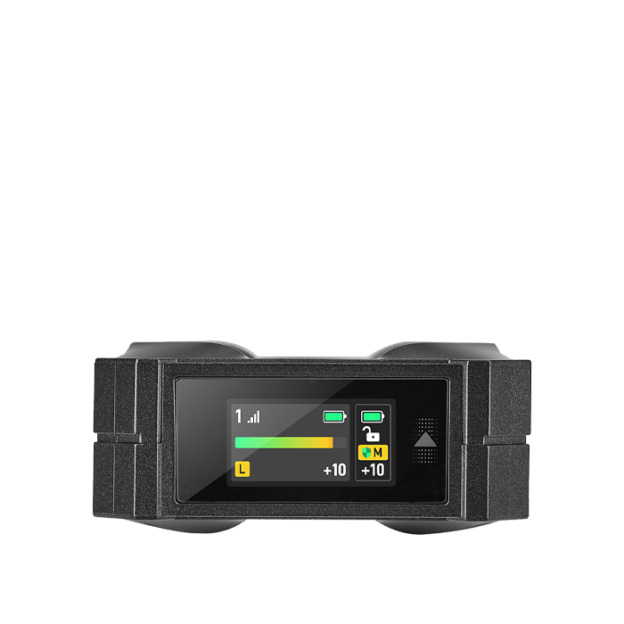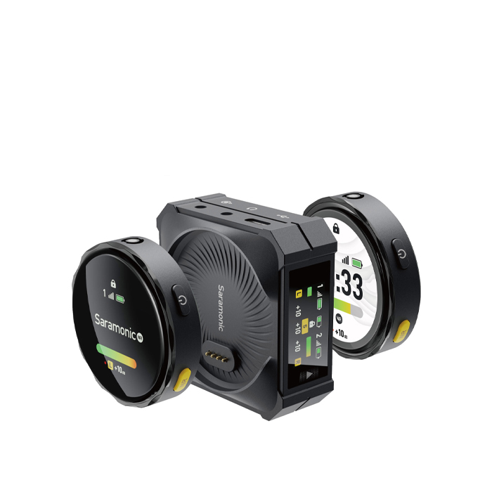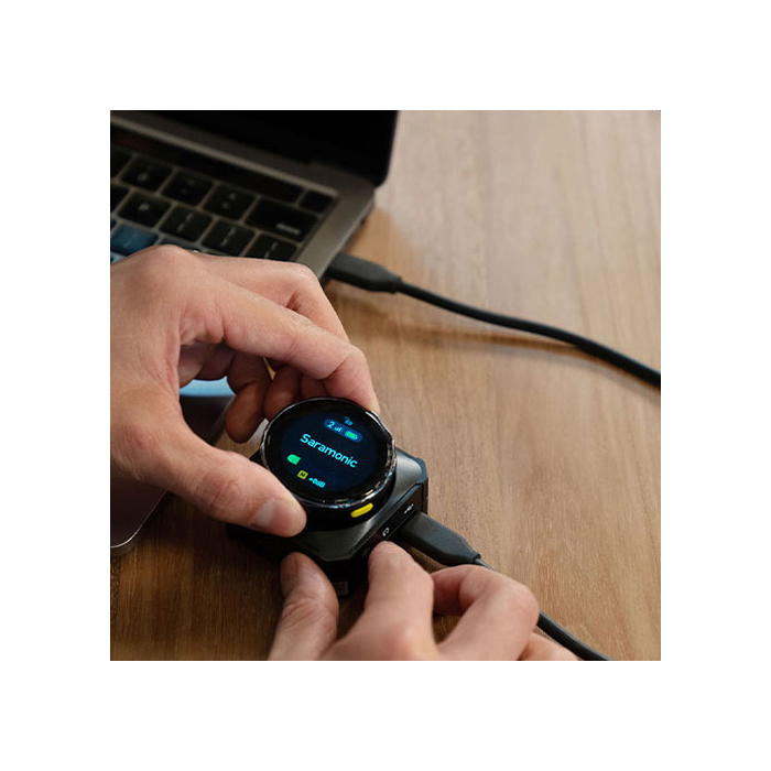 Ved hjælp af Saramonic-appen kan skaberne tilpasse knapfunktionerne, brugergrænsefladen og senderens baggrundsbillede for at skabe en mere personlig brugeroplevelse. Den 1,3” store farve skærm på senderen kan konfigureres fuldt ud efter brugerens præferencer, og det er nemt at tilføje dit eget billede, f.eks. et firmalogo, ved at forbinde det til appen. Skærmen på modtageren er på 0.96” og viser alle de vigtigste informationer, så som optageniveau, batteritilstand, trådløs signalstyrke og optagefunktion.