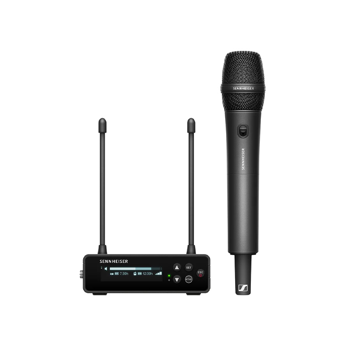 The EW-DP 835 Set includes the SKM-S handheld transmitter with the MMD 835 cardioid dynamic microphone module, ideal for on-camera interviews and capturing isolated dialog in noisy environments.