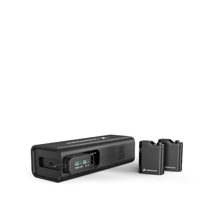 Features both a built-in microphone and 3.5mm locking connector for lavalier microphones. The transmitter comes with onboard recording capabilities for seamless backup. With an internal 16GB storage capacity it provides up to 30 hours of recorded audio at 24-bit / 48 kHz. When using the Sennheiser Profile system, you can activate Backup Recording Mode, that will automatically turn on backup recording, if the wireless signal becomes weak.