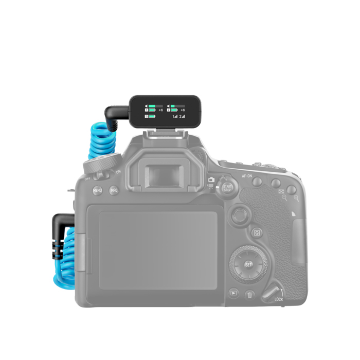 This tiny dual-channel receiver can be mounted either on a mirrorless or DSLR camera with a 3.5mm jack. It can also connect to a computer or mobile device via. USB-C or Lightning. The receiver is also equipped with a 3.5mm jack for headphone monitoring. The receiver's color OLED touchscreen shows you all important information at a glance, including levels and transmitter battery life. It also features a gyro sensor that automatically rotates the display 180° for optimal viewing. The built-in rechargeable battery powers the receiver for up to 7 hours.