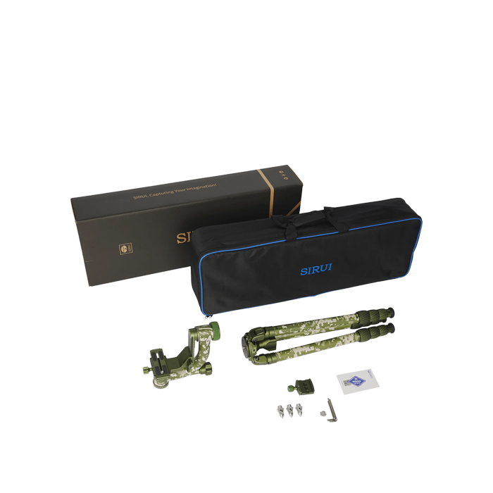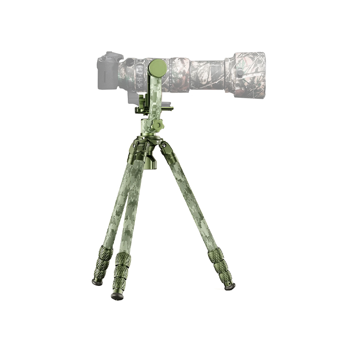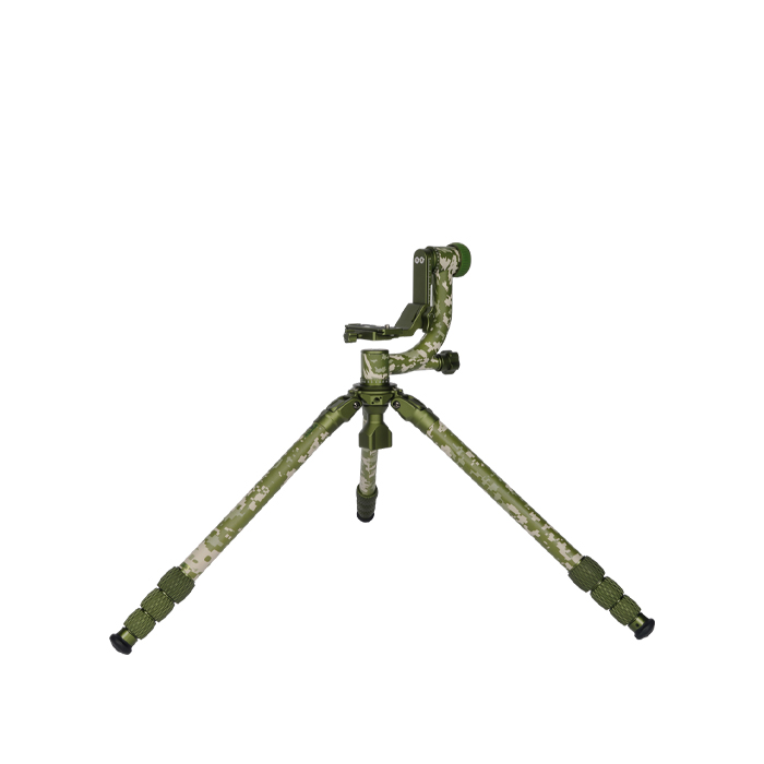 The camouflage tripod and head help filmmakers blend in well with the natural environment so they do not disturb wildlife while shooting.