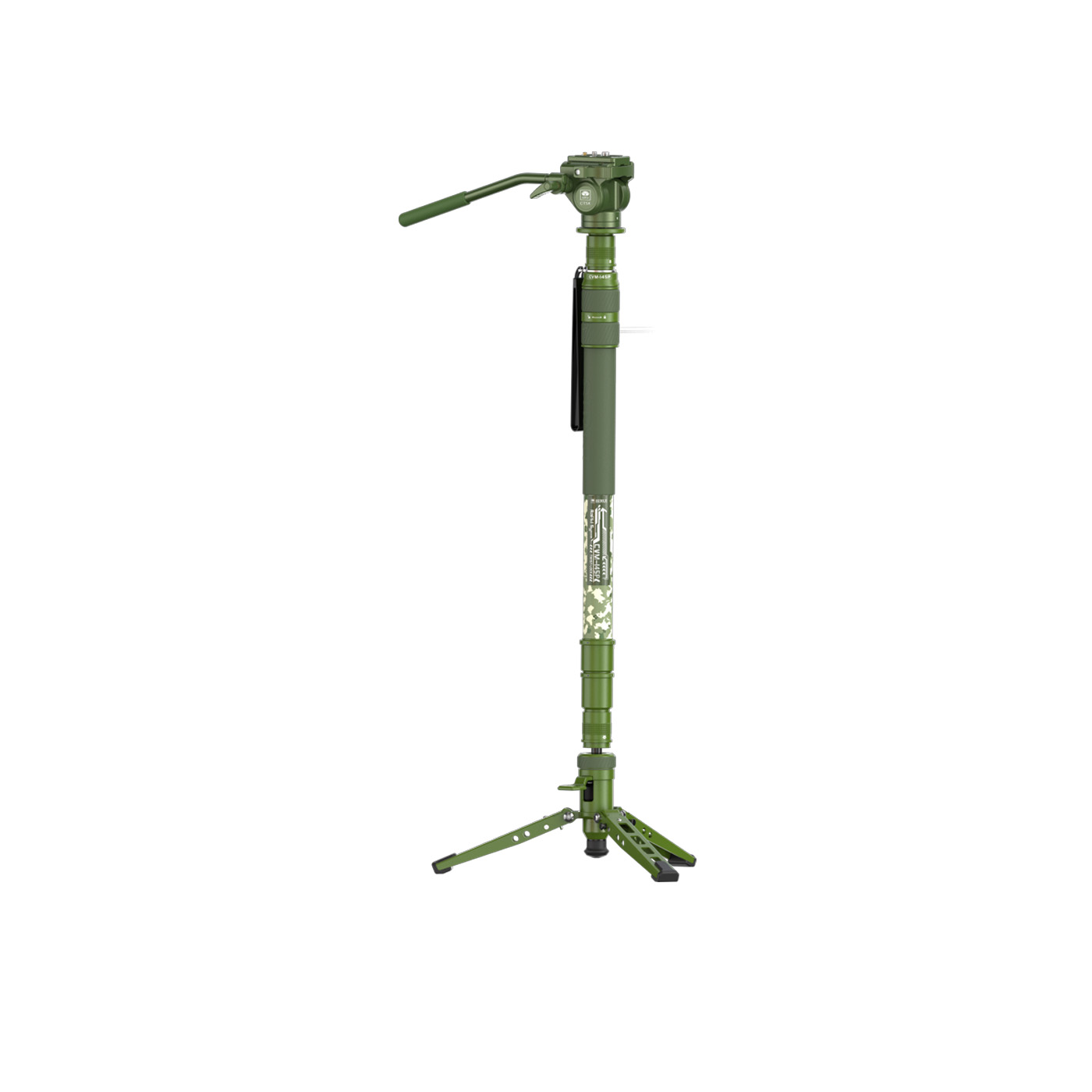 Kuglehoved med 36° hældning giver fuld bevægelsesfrihed i alle retninger og udtrækkelige metalpigge der gør det muligt at justere fødder, der giver et fast greb på forskelligt terræn.
