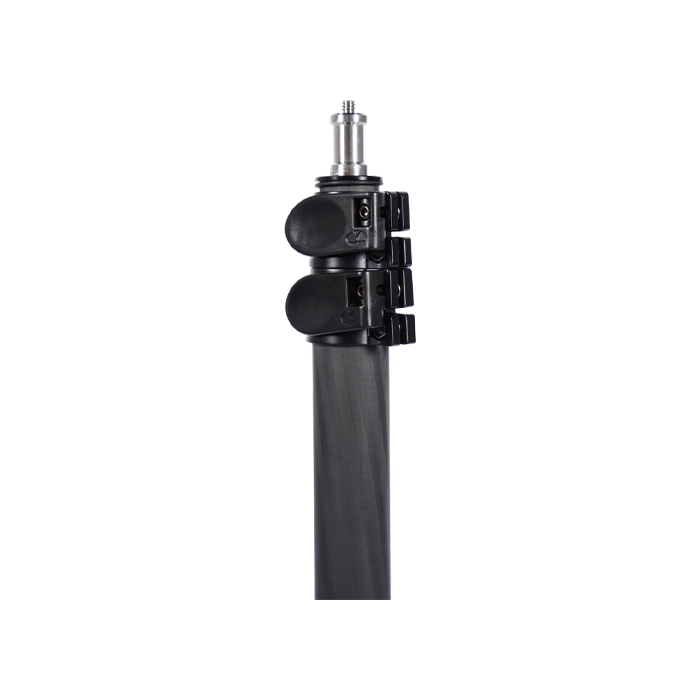 Super lightweight light stand with carbon tubes and flip locks. The 5/8" spigot and the 1/4" standard thread allow the connection of various lighting products like: Flashes, softboxes, continuous lights, etc. The air suspension allows a smooth lowering and thus protects your equipment and your hands.