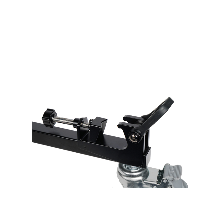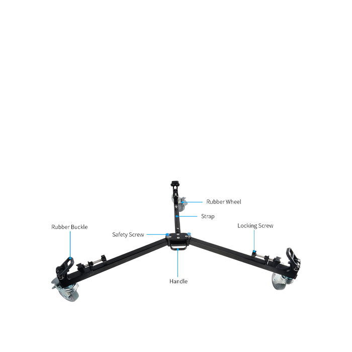 For rubber feet, it offers a universal sliding mount on each leg of the dolly. These mounts work as clamps that the tripod feet secure into.