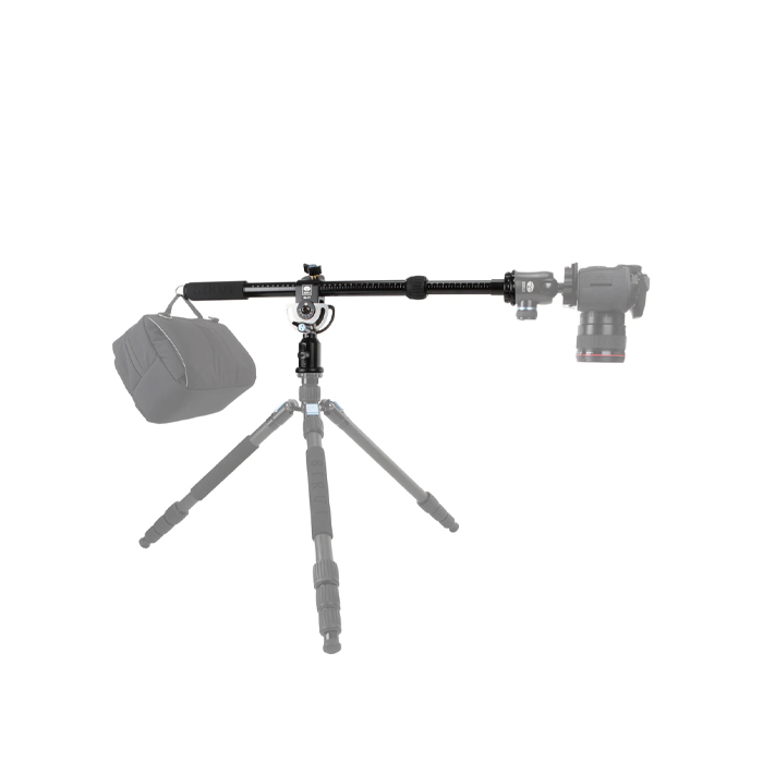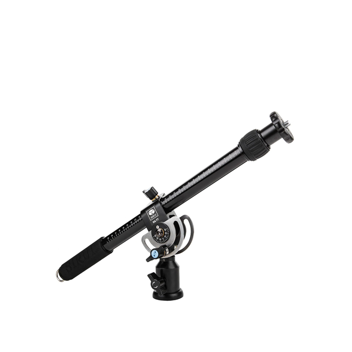 Kan sættes på stativer med 3/8" skrue. Armen kan panorere jævnt 360 grader og hælde 180 grader, eller låses i alle positioner/vinkler. Armen kan glide til venstre eller højre, hvorved du får den kreative kontrol og kan desuden holde to kameraer, kamera og monitor eller andre tilbehørsdele på et stativ. Sirui HA-77 kan bruges som en mini Jib ved videoproduktion.