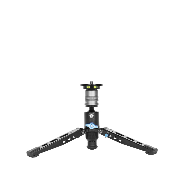 The legs offer two position settings, and can be folded up or down for easy storage. Holes in the legs allow you to tie the minipod to any position. With the legs folded up, a retractable metal spike is designed to meet different shooting needs.