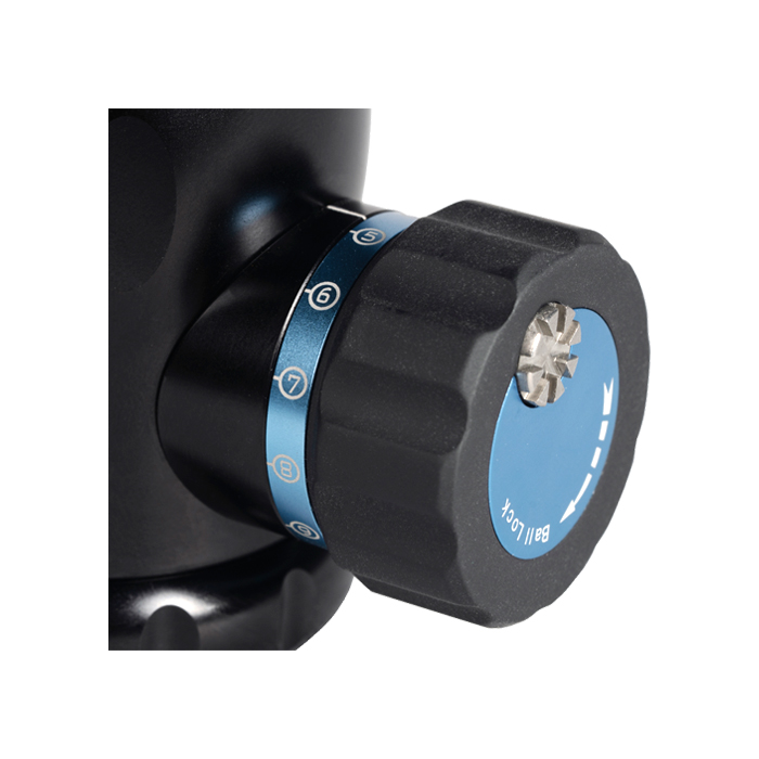 The MT-20 ball head works particularly precisely and smoothly. The base as well as the plate base can be rotated by 360°, ideal for panorama shots. The locking knob for the ball can be limited via a scale in the end stop. This allows you to adjust the mobility (friction) of the head individually to your camera. This prevents, for example, too much loosening of the ball and thus an unintentional tilting of the camera.