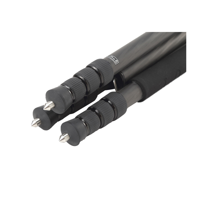 The tripod has 2 leg locking steps and thus stands especially safe. It is especially suitable for the studio and for working with larger cameras. A levelling bubble on the tripod cross allows an exact alignment of the tripod. Each leg consists of 4 sections with 3 sealed ring locks. The rubber feet and twist-out metal spikes allow the tripod to stand securely on any surface.