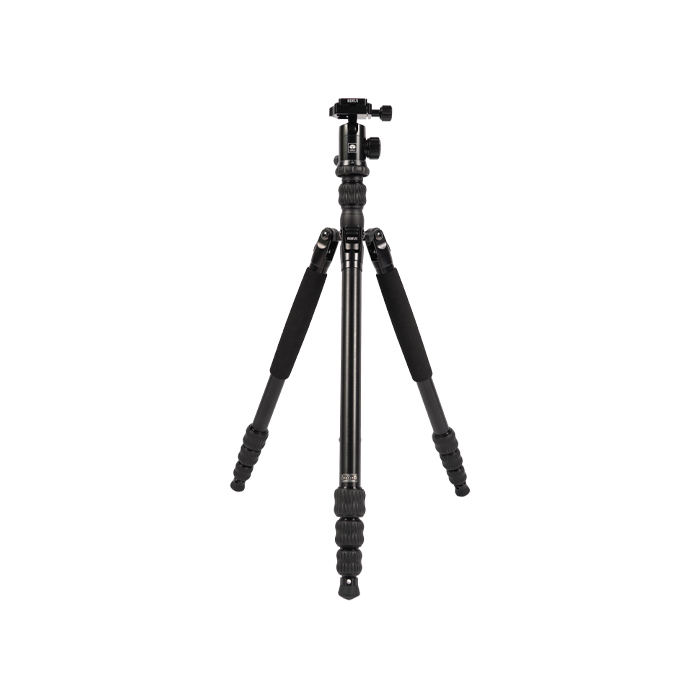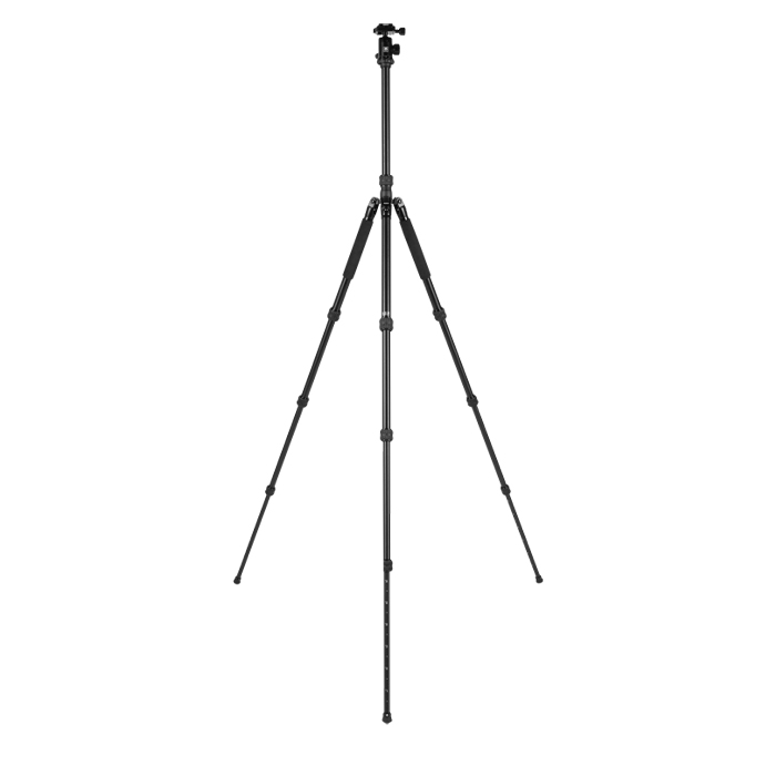 The tripod includes the semi-automatic leg angle adjustment buttons and twist leg locks to adjust the spread and length of the legs for different leg height needs.