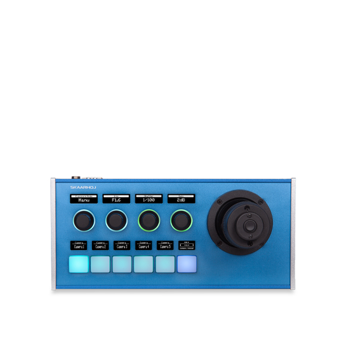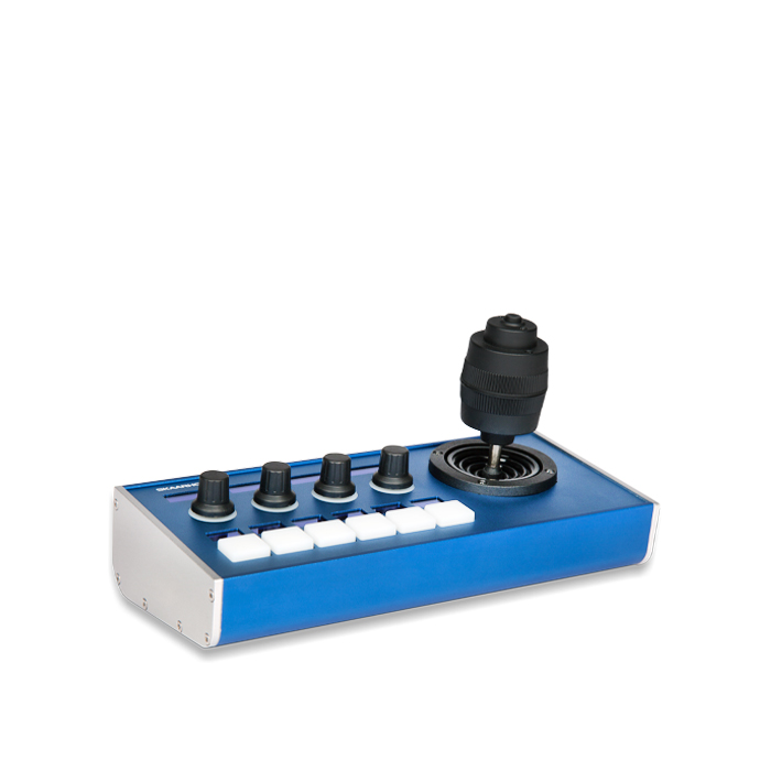 PTZ Fly w/Blue Pill Inside has a very compact form factor while featuring. Pan, tilt and rotate the handle to control your cameras. The PTZ Fly is in use in productions around the world and is a popular choice for many small setups, like churches and universities.