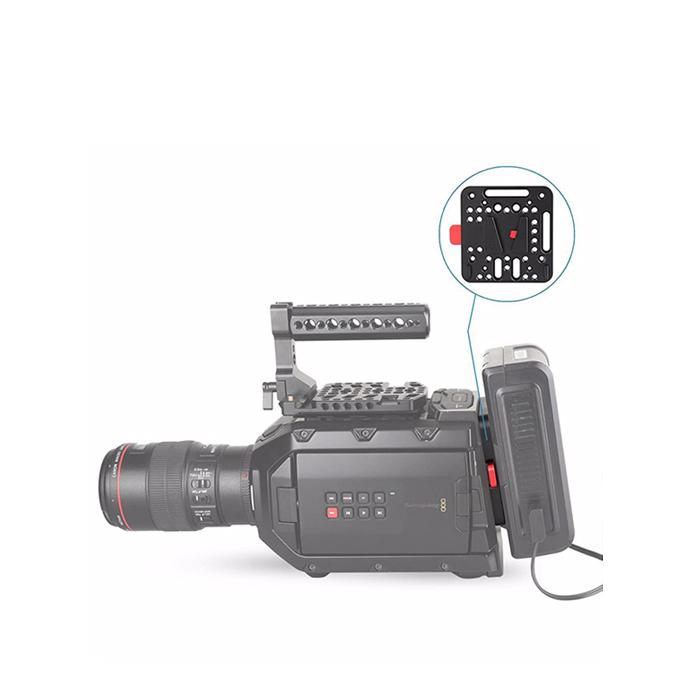 There are multiple mounting holes and grooves on the Female V-Dock, and you can attach this assembly directly to a SmallRig camera cage kit, SmallRig monitor frame, or SmallRig shoulder pad mount.