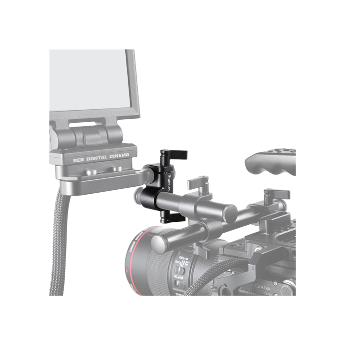 SmallRig 2069 could be mounted on 15mm Rod with 1/4 Inch Screw Hole 1182 for magic arm whereby monitor could be attached. It could attach 15mm rod and then Microphone Shock for microphone.