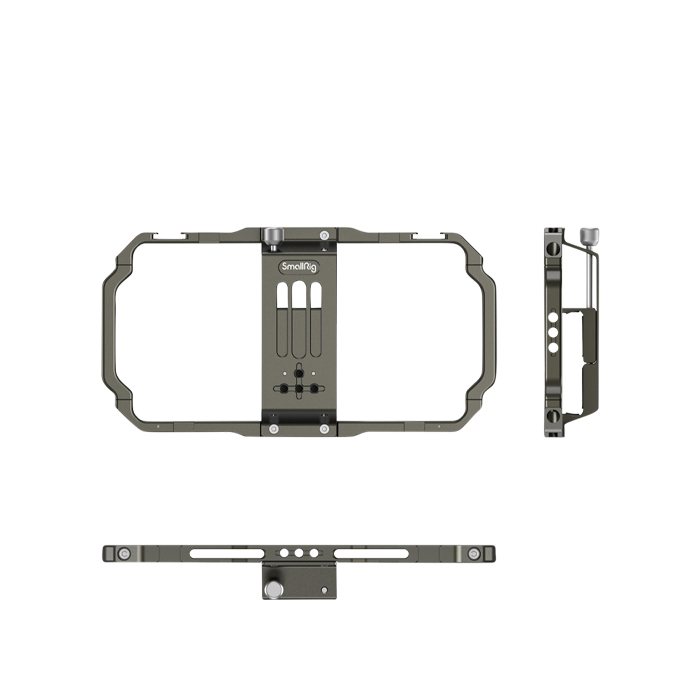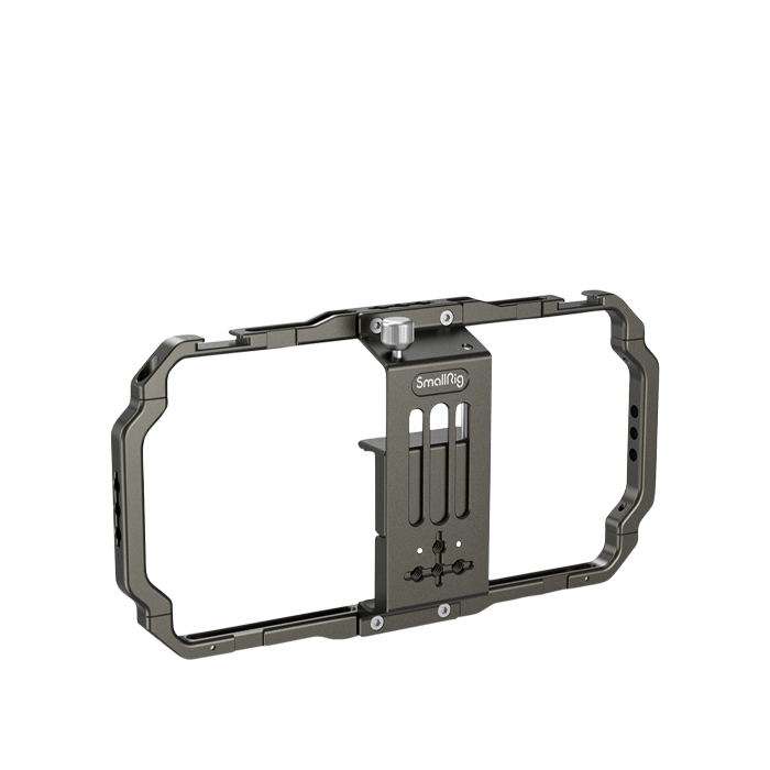 Multiple 1/4 threaded holes can be used to attach a tripod, a top handle with 1/4”-20 Screws, a side handgrip like SmallRig Aluminum Side Handle for Smartphone Cage HSS2424.