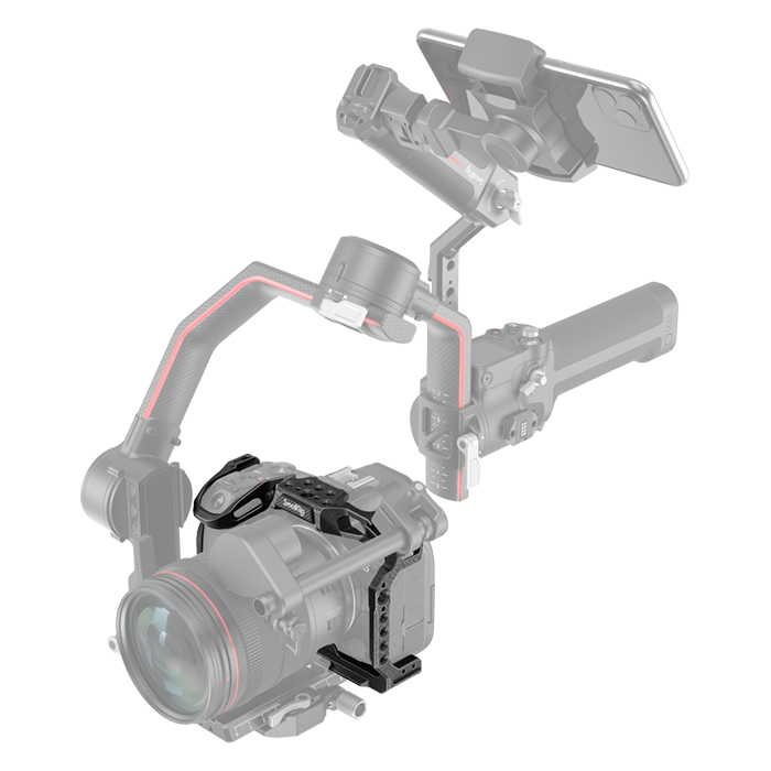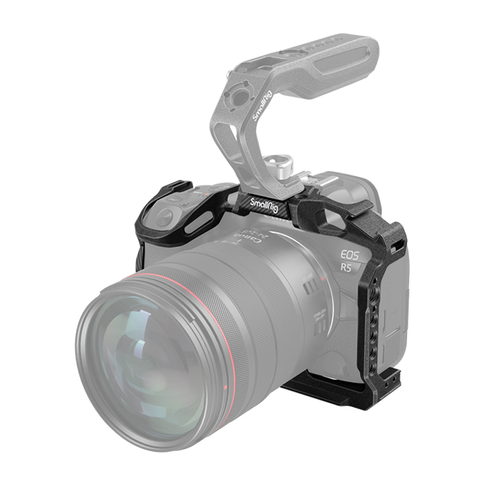 SmallRig EOS R5 & R5C & R6 “Black Mamba” Camera Cage 3233 provides protection and multiple accessory mounts for the camera in video shooting.