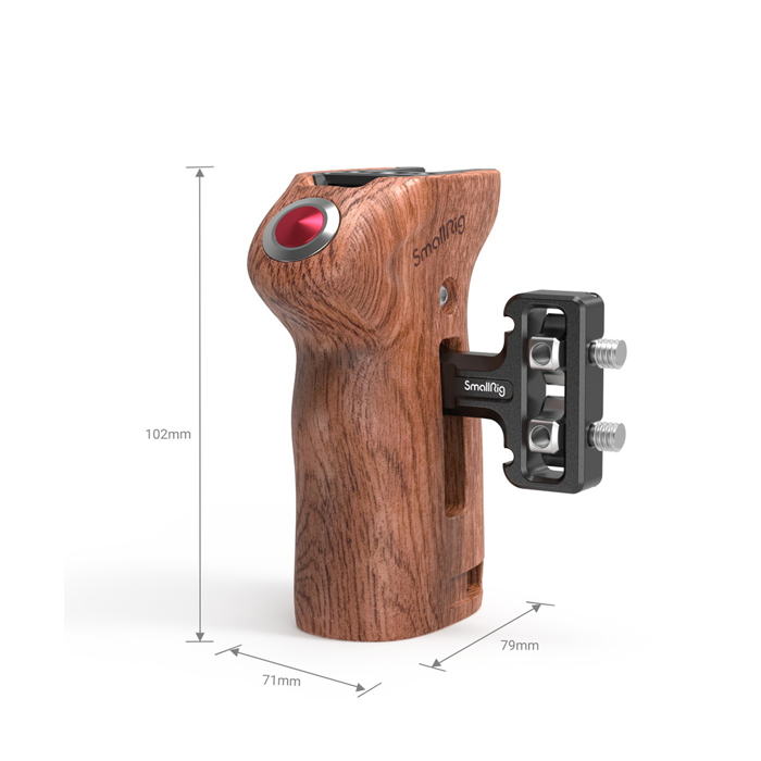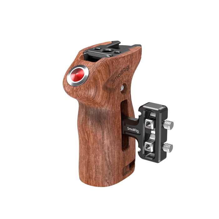 Ergonomically-designed, all-in-one wood handle improves grip experience. It firmly secures to a cage with two 1/4"-20 threads and adjustable height. Its top features 1/4"-20, 3/8"-16 threaded holes and a cold shoe for Monitor Mount 2904 and 2905.