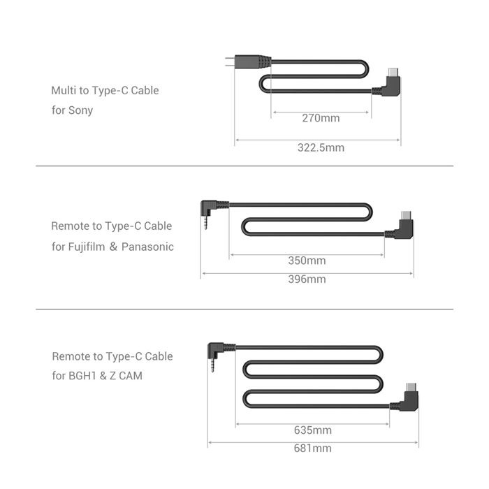 It is equipped with three control cables, supporting Sony FX30/ FX3/ A7RV/ A7II/ A7III/ A7IV/ A6000/ A6500, FUJIFILM X-T3/X-T4/X-T20/X-T30, Panasonic GH5/5S/G9/G95/S5/S1/S1R/S1/BGH1/BS1H and Z CAM E2/M4/S6. Add a longer Control Cable ID:3407 which is sold separately to your shoulder kit for Sony cameras.