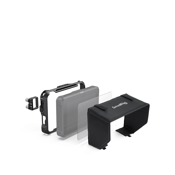SmallRig 3456 Atomos Shinobi 7 Cage Kit is an aluminum-alloy full cage equipped with various accessory mounting points. It comes with NATO rail on top and bottom, 1/4"-20, 3/8”-16 threaded holes for quick release and stable attachment of magic arm and monitor mount.