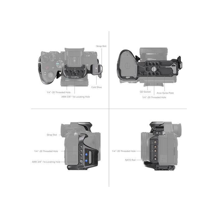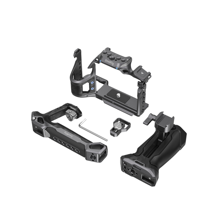 For the cage, a locating pin, a 1/4"-20 screw, and an M2.5 screw together lock the camera firmly. It features a clean streamlined design that gives full access to the top buttons.