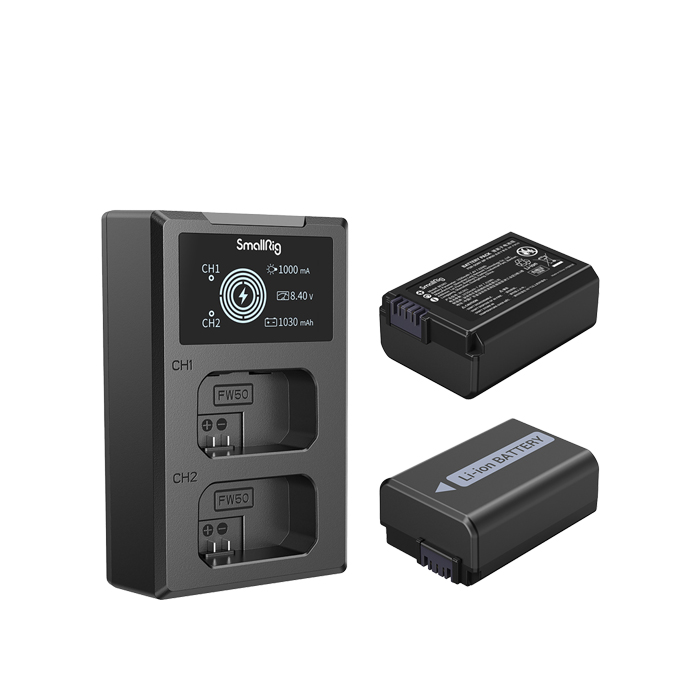 SmallRig NP-FW50 Camera Battery and Charger Kit 3818 includes two batteries and one charger.