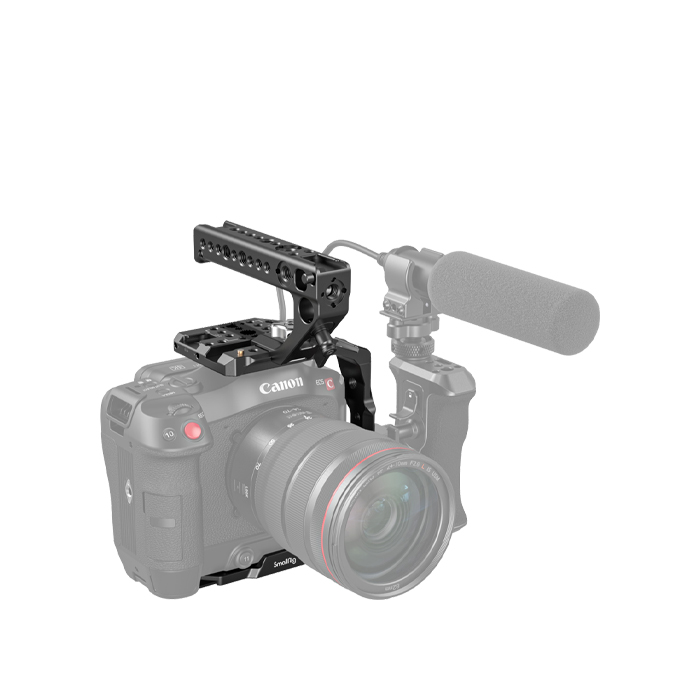 It includes a top plate, a side plate, a baseplate, a detachable extended baseplate, a NATO top handle, a cable clamp, etc., among which, the comfortable NATO top handle facilitates camera movement and stabilize shooting. The top plate, baseplate and side plate can be assembled into a half cage that supports the original handle unit and microphone holder unit.