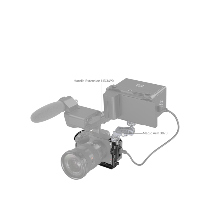 At the battery door there is a hinge arm that fits camera curve for improved grip experience for little finger. A dedicated HDMI cable clamp protects interfaces to ensure stable signal transmission.