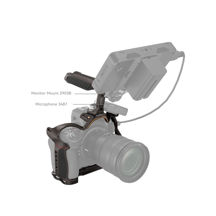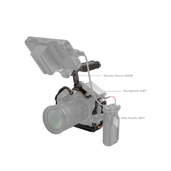 SmallRig 4317 "Night Eagle" Cage Kit for Nikon Z 8 is designed to protect the camera and attach accessories. It features a brand-new design: gun brown curves interspersed with gold to supplement the classic style of the Nikon Z 8.