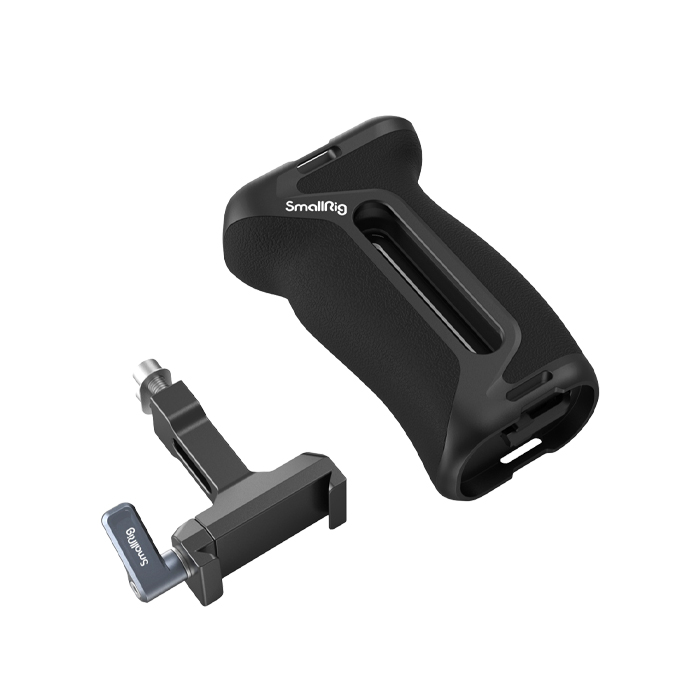 The highly versatile handle adopts the ARCA-Swiss Type interface and is compatible with the built-in ARCA-Swiss mount plate, cages, L-Bracket, Rotatable Horizontal-to-Vertical Mount Plate, etc. Features ergonomic design, which allows to use of the left & right hand interchangeably to provide a comfortable grip.