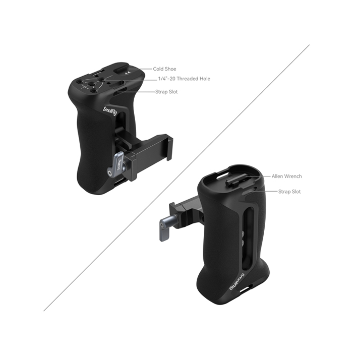Comes with 1/4"-20 threaded hole, 1/4"-20 locating hole, strap hole, cold shoe for attaching Monitor Mount 2905, Ballhead Magic Arm 3875, LED Video Light 3286, Microphone 3468, etc. Besides, a built-in magnetic Allen Wrench is included for easy mounting and adjusting accessories.