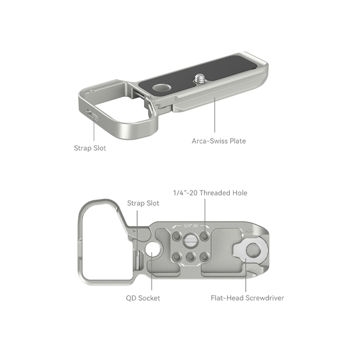 At the bottom there are QD socket, compatible with QD shoulder strap, and it also reserves waist strap holes for a Hand Strap 3848. Besides, a magnetic wrench is included for easy disassembly and assembly.