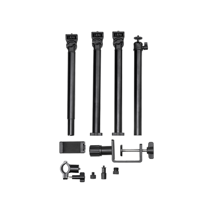 The bracket can realize any 360° angle adjustment of the device through a 3-section articulated arm (180° rotation of the sections) and a bottom knob. Both the C-clamp and the articulated arm are detachable, flexible to combine and customize according to your needs, and easy to carry around.