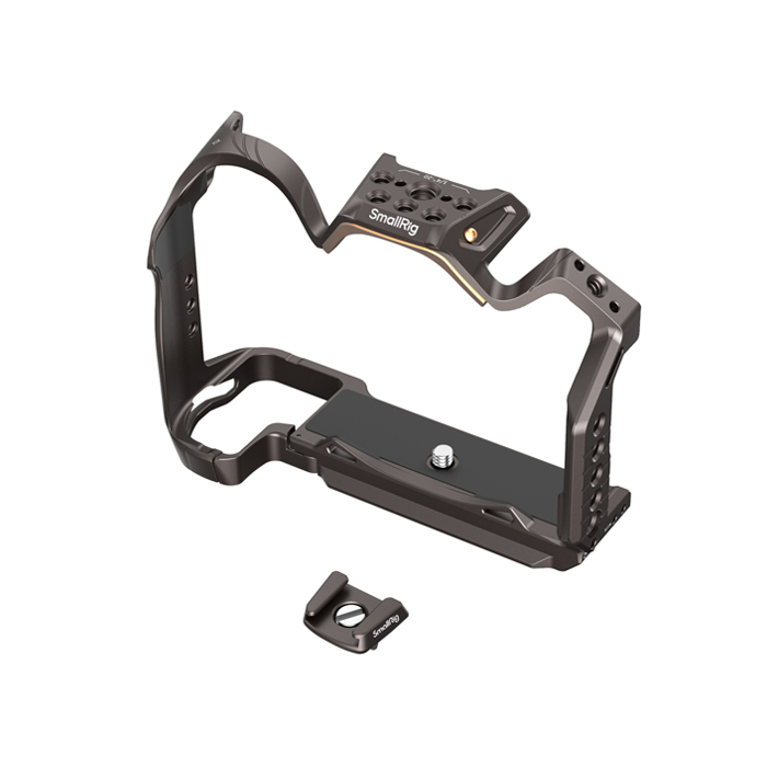 SmallRig 4521 "Night Eagle" Cage for Nikon Z 6III to provide protective housing and versatile expansion options for a camera. The cage features a modern design with sleek curves, subtle gold highlights, and a new gunmetal brown color scheme.