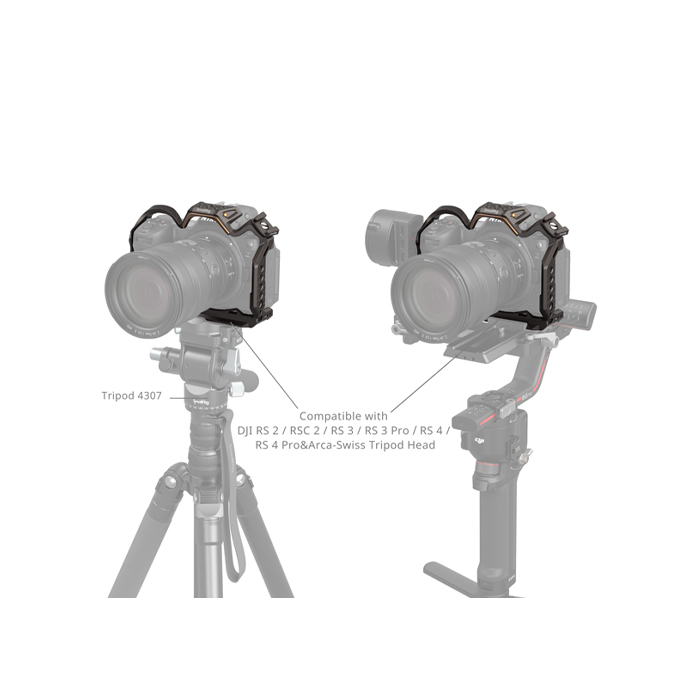 Arca-Swiss quick-release plate on the bottom is compatible with Arca-type tripod and DJI RS 2 / RSC 2 / RS 3 / RS 3 Pro/ RS 4 / RS 4 Pro gimbals, which allows for easy transitions between gimbals, handheld and tripod setups. Additionally, a dual-head flat wrench on the base simplifies assembly and disassembly.