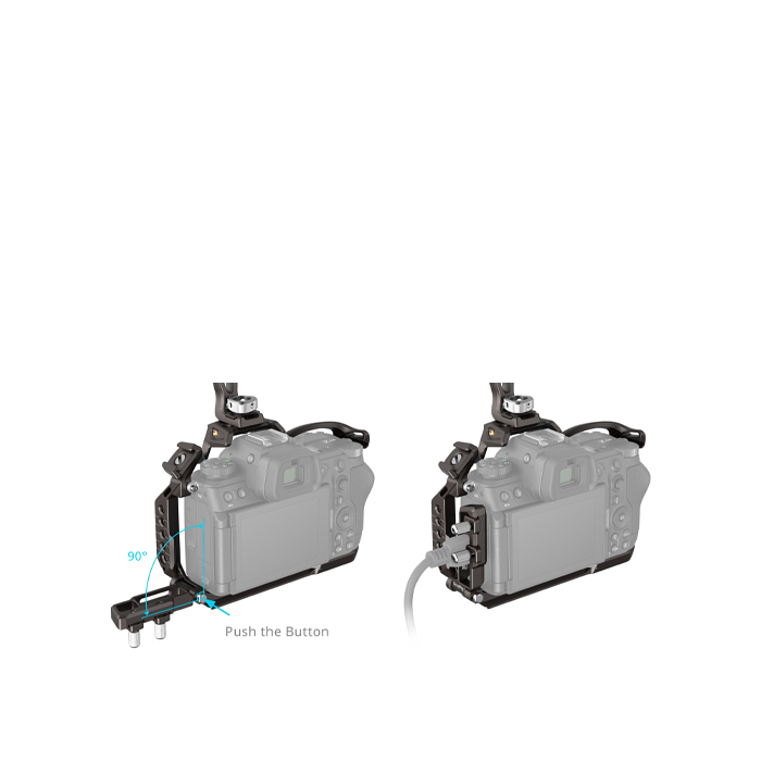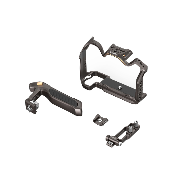 The kit includes a cage, a top handle, an HDMI & USB-C cable clamp, and a cold shoe mount. The cable clamp adopts a press-and-flip design that allows for easy access to the interfaces without disassembling and prevents accidental signal interruptions ensuring stable signal transmission. The detachable cold shoe mount features anti-deflection positioning pins at the bottom.