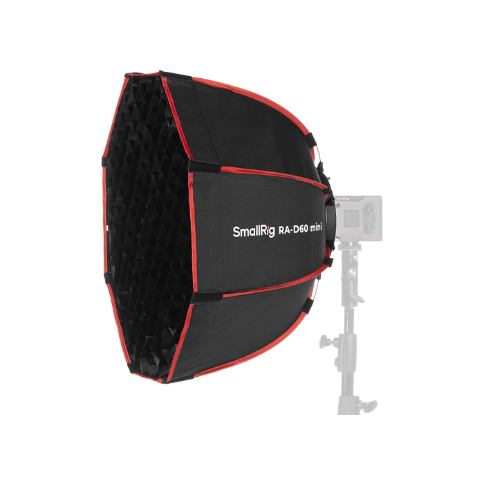 SmallRig RA-D60 mini Parabolic Softbox is a 60cm (23.6in) diameter softbox designed specifically for the RC60/100 series COB lights. Thanks to its quick release squeeze mechanism, assembly and disassembly are effortless, streamlining the user experience for optimal usability.