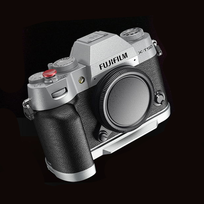 SmallRig 4713 Silicone L-Shape Grip for FUJIFILM X-T50 (Silver) is designed to improve the camera grip. The L-Shape Grip mounts to the camera with a 1/4"-20 screw at the bottom, and the built-in silicone pads prevent scratches. The texture and color of the grip perfectly match with FUJIFILM X-T50.