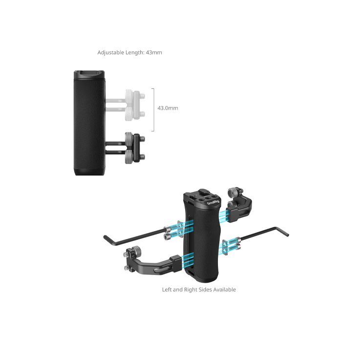 Crafted with ergonomic precision, the handle boasts a skin-friendly, anti-slip silicone coating, allowing seamless interchangeability between left and right sides for a comfortable shooting experience. With a vertical adjustment range of 43mm / 1.7in, it enables optimal grip positioning based on the camera size.