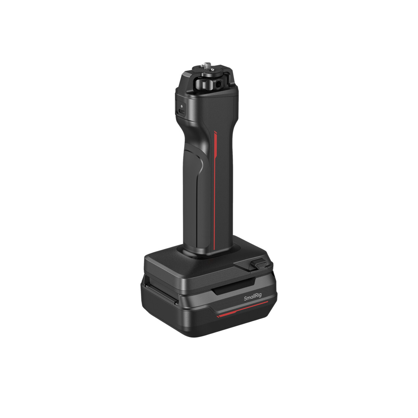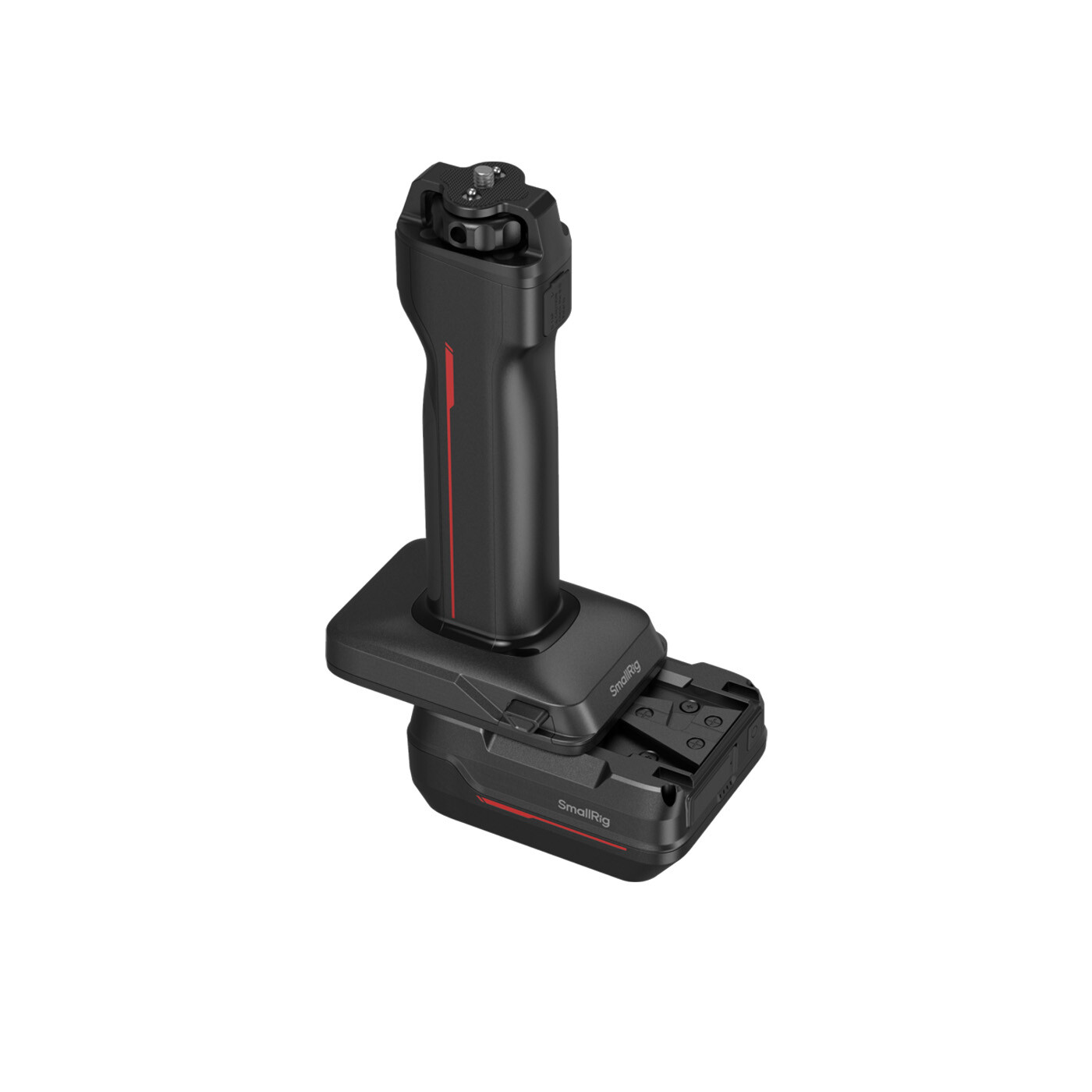 På toppen af grebet findes en torsionsresistent 1/4"-20 skrue med positioneringsstift, som giver mulighed for montering på videolamper med standard 1/4"-20 gevindhuller.