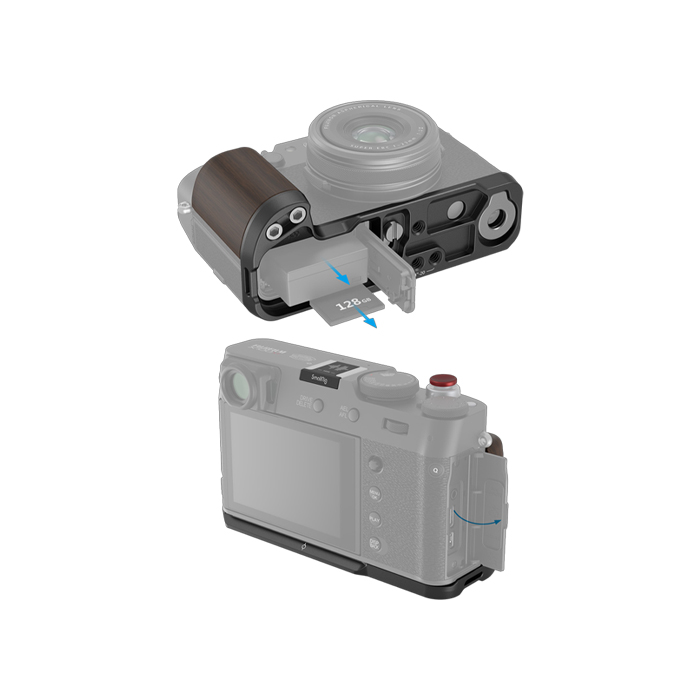 SmallRig 4805 Wooden L-Shape Grip for FUJIFILM X100VI / X100V (Black) is designed to improve the camera grip. The L-Shape Grip mounts to the camera with a 1/4"-20 screw at the bottom, and the built-in silicone pads prevent scratches.