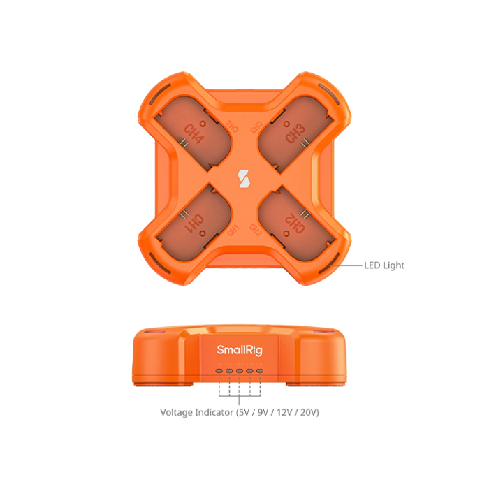 SmallRig 4838 LP-E6NH 4-Channel Camera Battery Charger LP-E6N 4-Channel Camera Battery Charger is a high-efficiency, high-power charger for LP-E6 batteries. Supporting a maximum input of 60W, this charger features four LP-E6 charging ports, allowing simultaneous fast charging of four batteries.