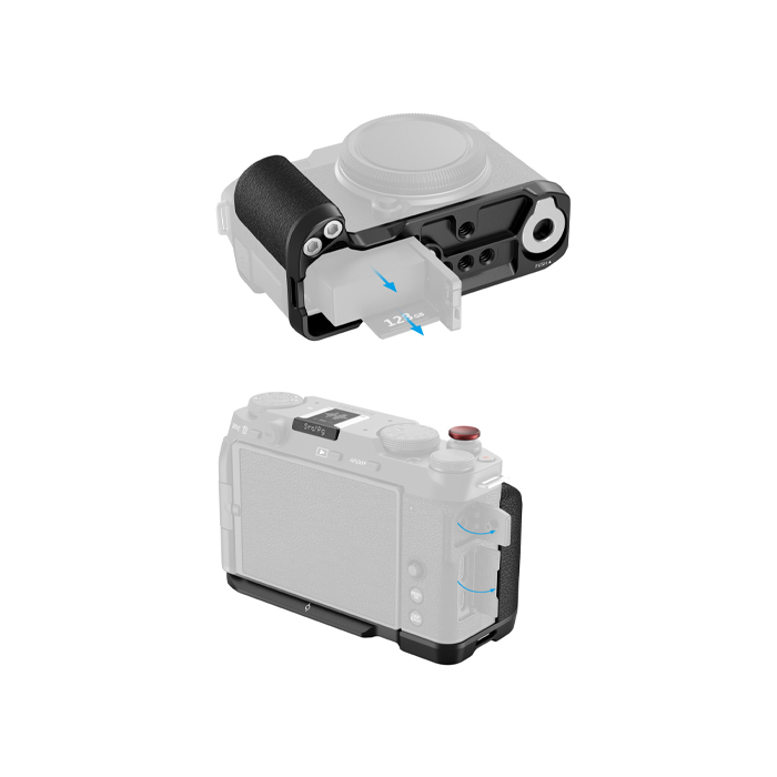 SmallRig 4876 L-Shape Mount Plate with Silicone Handle for FUJIFILM X-M5 (Black) is designed to improve the camera grip. The L-Shape Grip mounts to the camera with a 1/4"-20 screw at the bottom, and the built-in silicone pads prevent scratches.