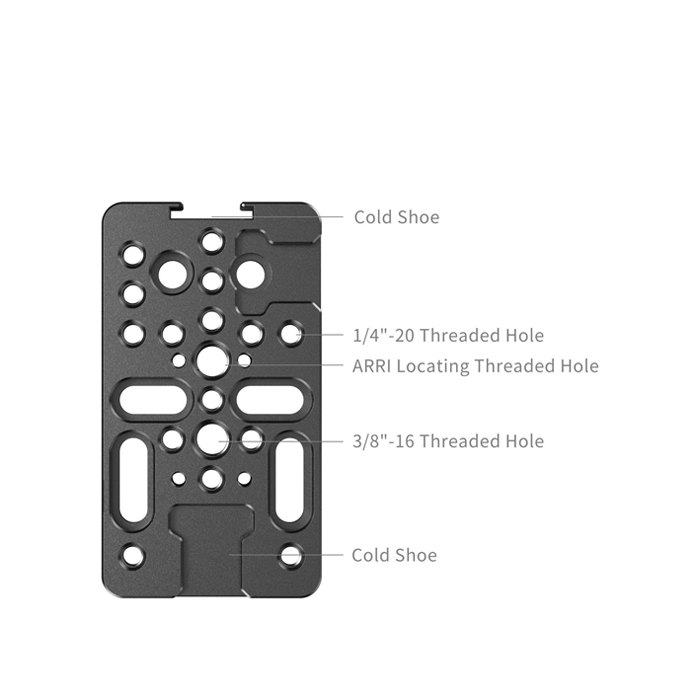 SmallRig 4887 Multifunctional Cheese Mount Plate is a versatile universal mounting plate equipped with numerous 1/4"-20 and 3/8"-16 standard holes, standard cold shoe mounts, and anti-deflection holes. With industry-standard 9mm hole spacing, this plate allows you to mount batteries, cameras, lights, microphones, handles, and other accessories onto your shooting system. Being only 65g / 2.3oz, this mount plate is lightweight and portable.