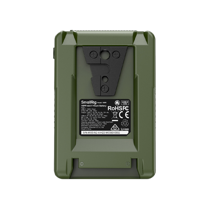 SmallRig 4930 VB99 mini V-Mount Battery (Green) is a compact V-mount battery featuring a highly integrated design that effectively reduces the battery's overall size, making it lightweight and portable. It features LG A-grade 18650 high-rate cells, ensuring accurate capacity, cycle performance, and exceptional stability.
