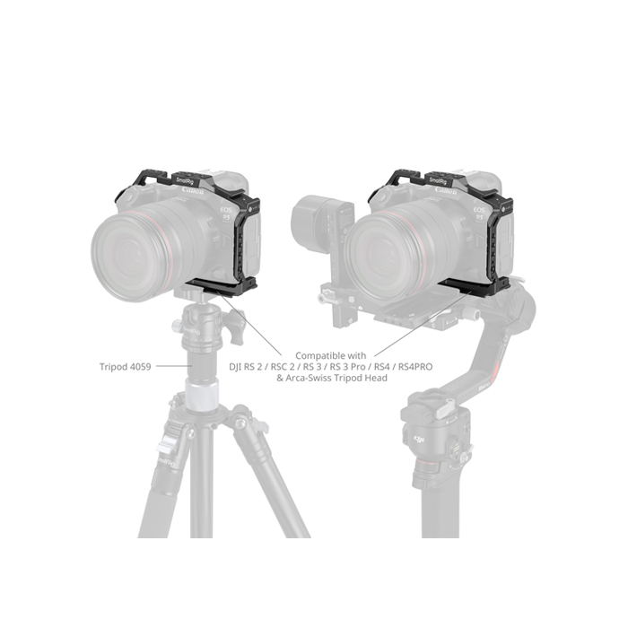 The Arca-Swiss quick-release baseplate allows for direct mounting on Arca-type tripods (ID 4060, 4353) and DJI RS 2 / RSC 2 / RS 3 / RS 3 Pro / RS 4 / RS 4 Pro stabilizers, enabling swift transitions between stabilizer, handheld, and tripod setups. Moreover, the cage incorporates a magnetic dual head wrench at the bottom for easy assembly and disassembly.
