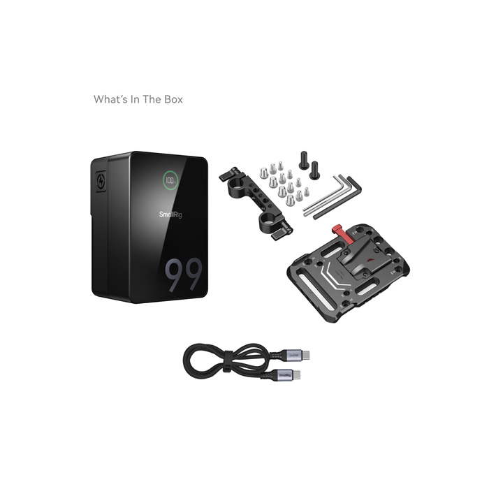 SmallRig 5047 VB99 Pro mini V Mount Battery (Kit) includes the VB99 Pro mini V Mount Battery with the foldable V-Mount Battery Mount Plate, providing a compact and lightweight integrated V-mount battery power solution. This kit stands out for its exceptional compatibility, adapting seamlessly to various devices and shooting environments. Its small size and portable design allow for convenient carrying and storage, providing power solutions to your devices anytime, anywhere.